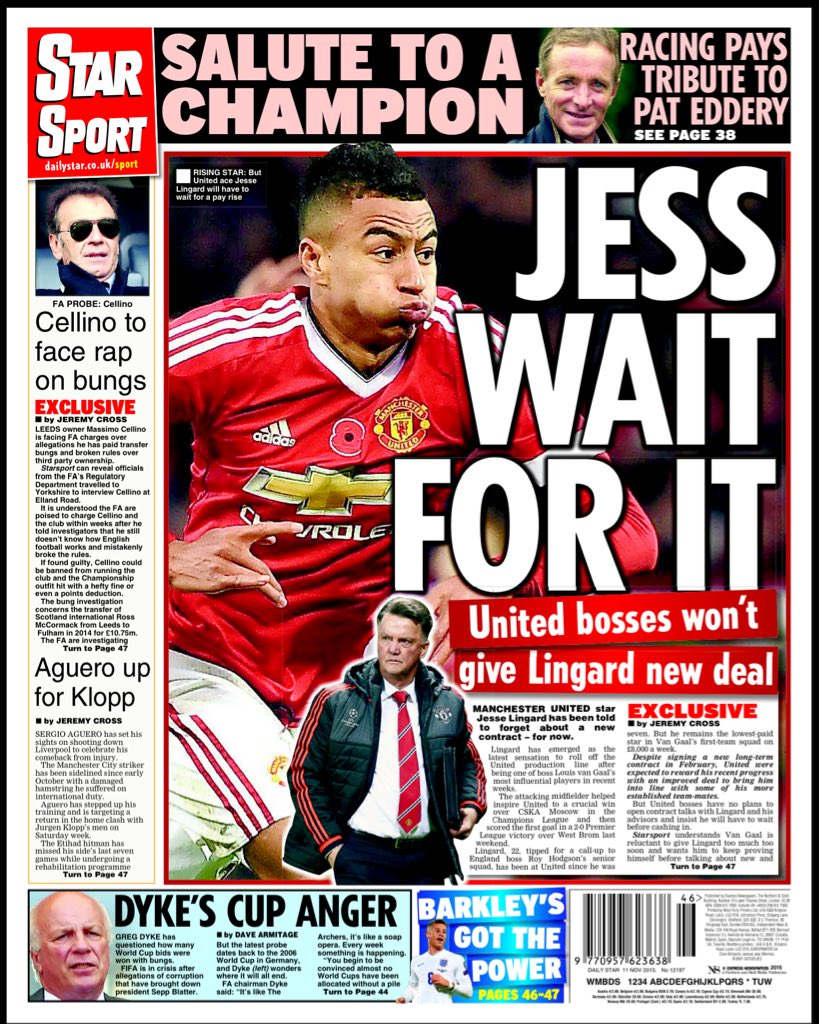 Daily Star har med ordleken ”Jess wait for it” besked till det senaste stjärnskottet på Old Trafford. ”Uniteds ledning vill inte ge Lingard nytt kontrakt”.