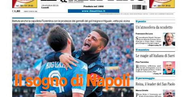 Il Mattino, Neapeltidningen, känner däremot redan att ”toppen är nära”, och låter Napolisegern mot Fiorentina ta stor plats på nyhetsettan under rubriken ”Napolis dröm”. Förstås utan att jinxa med att nämna ordet scudetto.